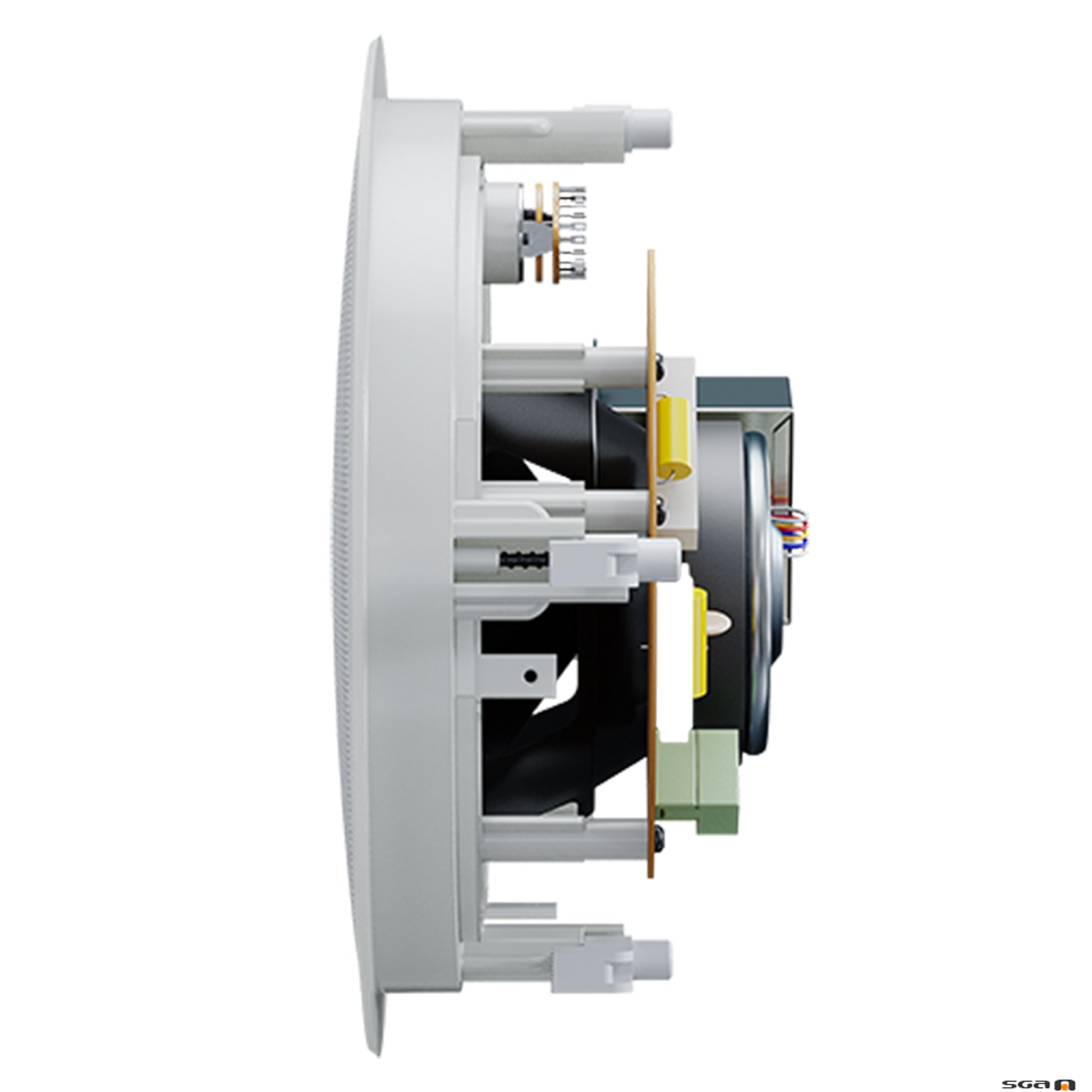 • Ceiling-mounted speaker with white grille
