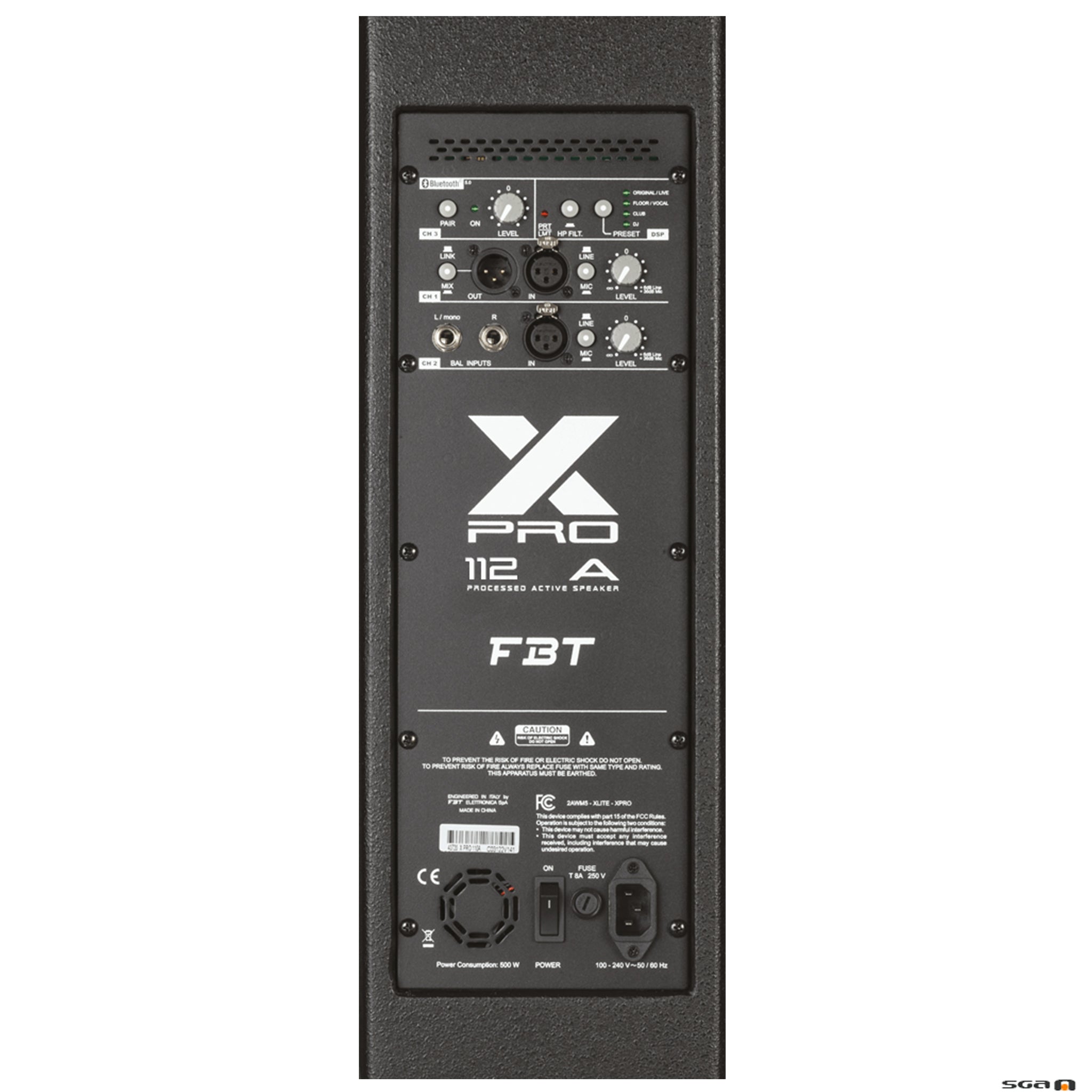 The FBT XPRO 112A series speakers with integrated 3-channels mixer feature lightweight, yet rugged gas injected molded plywood cabinet construction. Available in black finish, the FBT XPRO 112A series speakers provide fixed installations with an elegant design that blends into any decor. The asymmetrical shape of the FBT XPRO 112A cabinet also allows use as a powered floor stage monitor. The FBT XPRO 112A is two way design incorporating a 12” low frequency woofer and 1” HF compression driver coupled to a 80°H x 50°V rotatable constant directivity horn. With a frequency range of 50Hz - 20kHz the FBT XPRO 112A speaker provide high fidelity sound for both speech and music applications with a maximum SPL of 129dB. The bi-amplified FBT XPRO 112A active speaker feature a 1200W low frequency amp and a 300W high frequency amp. The control panel features a three-channel mixer with two micro-line inputs, a stereo input and a dedicated channel for bluetooth 5.0; two xlr inputs, stereo input, xlr output with ch1 or mix link selector, hp filter, two mic-line selectors, dsp preset selector, bluetooth 5.0 with pairing led. 4 x M10 rigging points built-in into the cabinet along with the optional mounting brackets allow the FBT XPRO 112A speaker to be surface mounted on walls or ceilings. A standard 1.38” speaker stand socket allows the FBT XPRO 112A to be mounted on speaker stand.