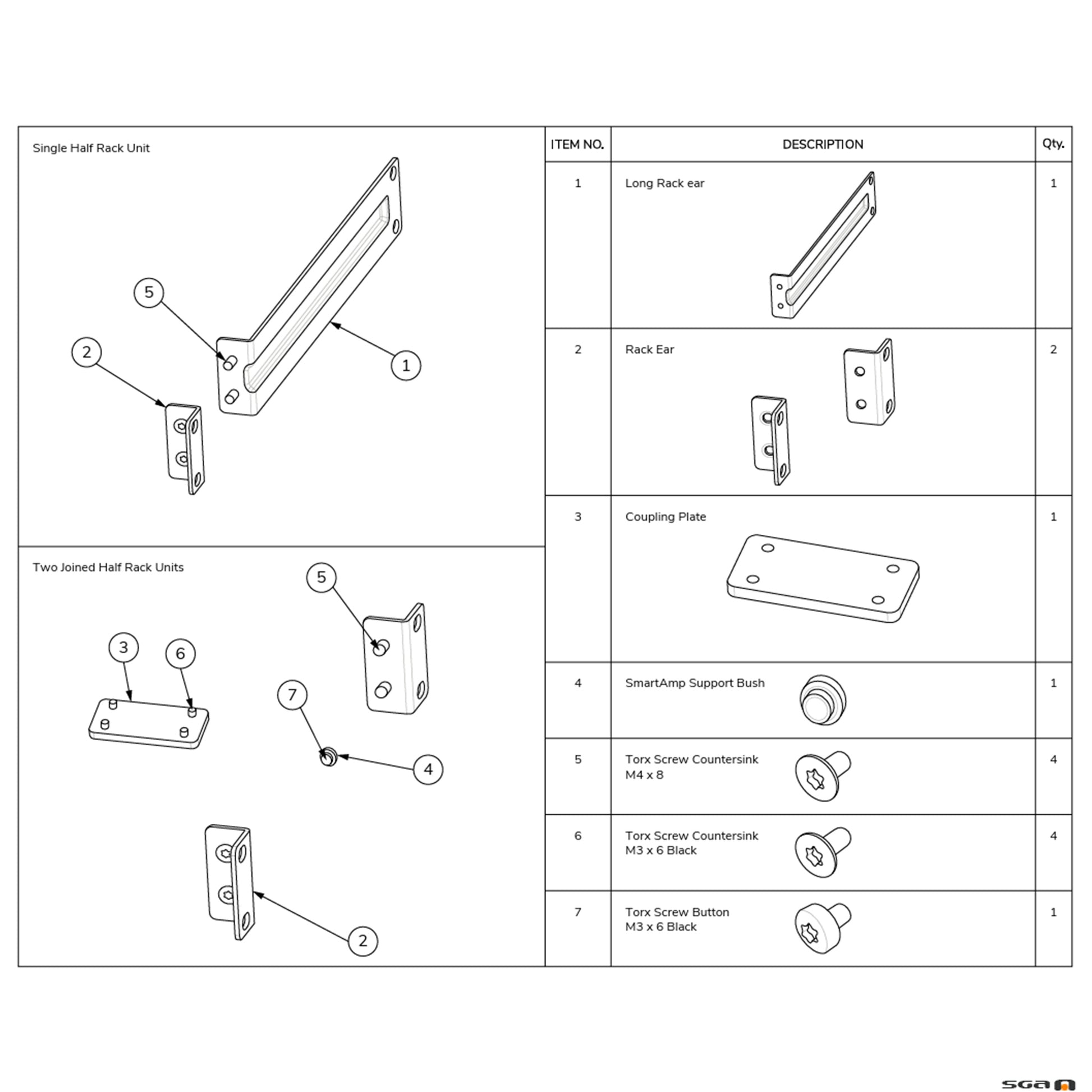 Optimal Audio rack ears and couplings for half rack SmartAmp 10/20.